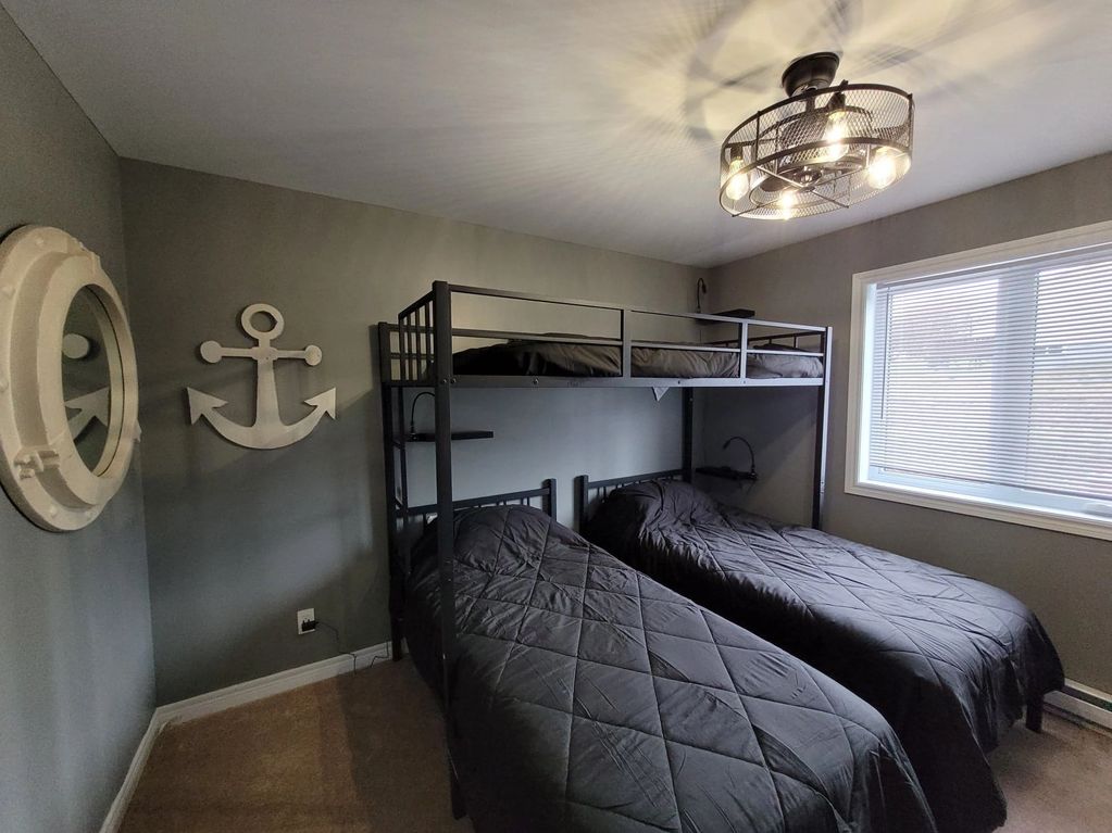 Bedroom with 3 beds, full dresser and 32 inch smart TV